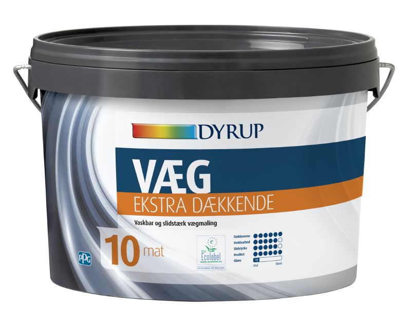 Uanset om det er til børneværelset, korridoren eller bryggerset, er Dyrup Væg 10 Ekstra Dækkende et ideelt valg for områder, der kræver en større slidstyrke og robusthed. Denne maling findes i to forskellige glansgrader: 5 og 10, så du kan vælge den finish, der passer bedst til dine behov.