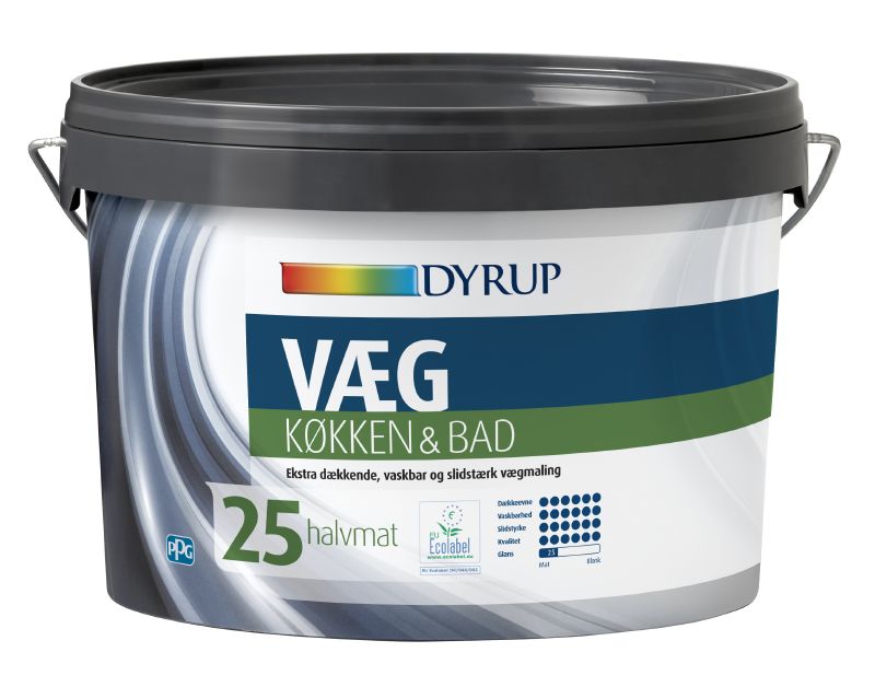 Dyrup Væg 25 Køkken & Bad er nem at påføre og stænker minimalt, hvilket gør malerarbejdet til en leg. Den er velegnet til anvendelse i vådrum og tåler hyppig rengøring med almindelige rengøringsmidler.